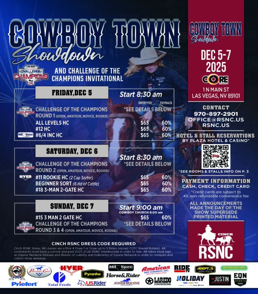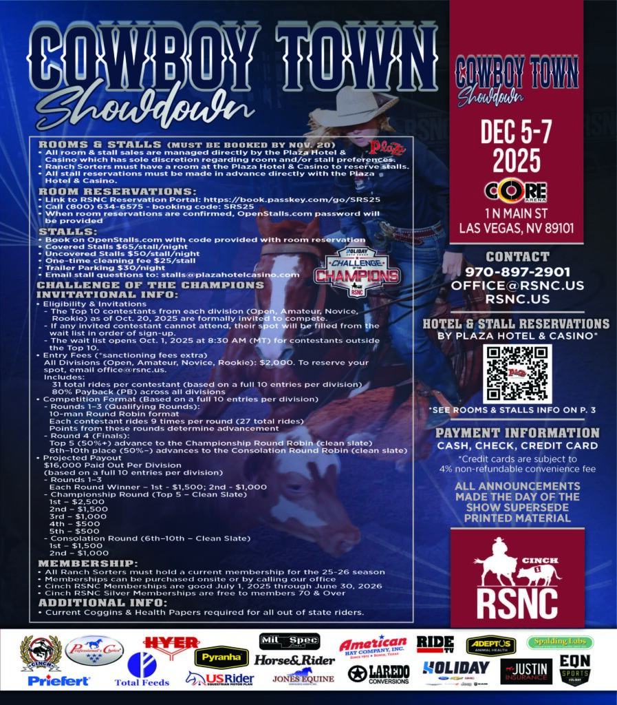 A year full of ranch sorting is almost in the book, but ranch sorting isn’t slowing down! The highly anticipated Cowboy Town Showdown kicks off Dec. 5 at the Core Arena in the Plaza Hotel & Casino, and features a first-of-its-kind Challenge of the Champions Invitational event. With the NFR kicking off at the same time, Las Vegas is the place to be to catch rodeo and ranch sorting legends in action!